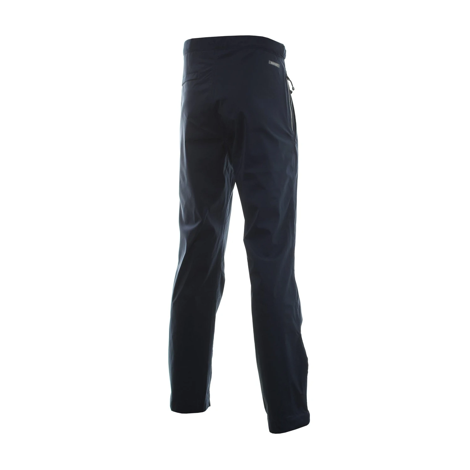 Mens Adidas Golf RAIN.RDY Waterproof Pants. A seam sealed, fully waterproof trouser. RAIN.RDY technology blocks the wind and rain while keeping it dry inside. Waterproof, windproof, breathable. Features include; zippered hand and back pockets and velcro adjusters at waist and leg openings for a secure fit. Finished with adidas Badge of Sport logo at left thigh. 100% Polyester – 1 year limited waterproof warranty