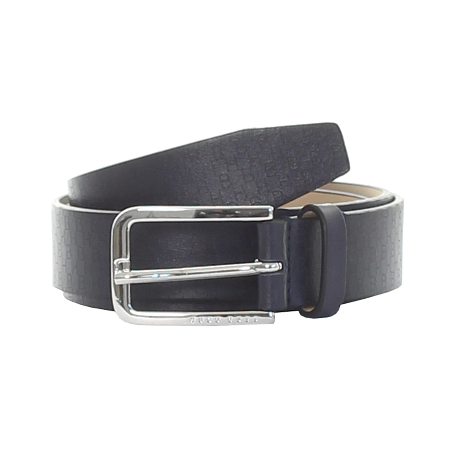 Mens Hugo Boss Clorio-HB Golf Belt. New for spring/summer 2020, a sporty twist on a staple accessory by BOSS. This versatile belt is crafted in textured leather with Hugo Boss branding. It secures with a simple pin buckle in brushed metal. Width 3cm – 100% Cow Skin