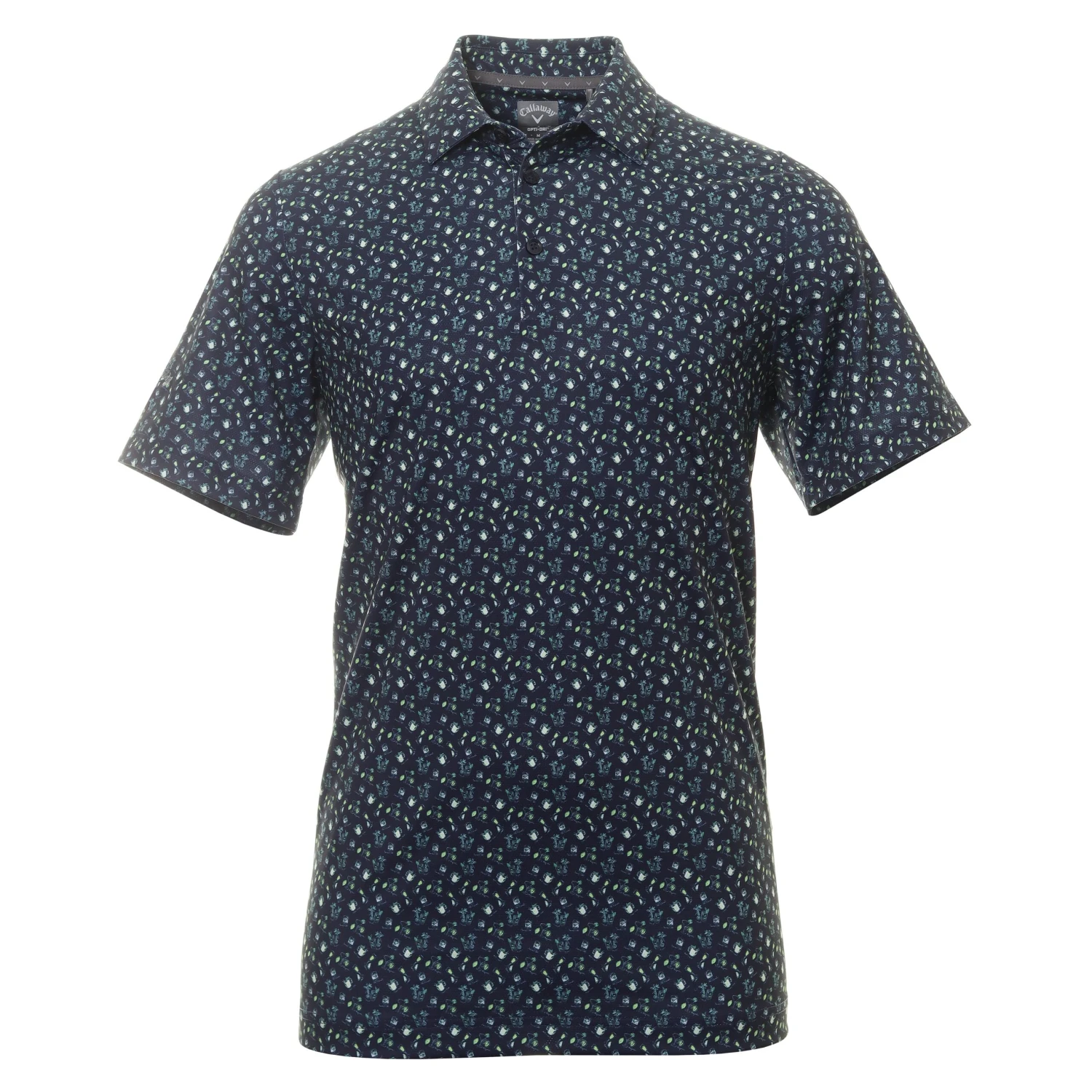 Mens Callaway Golf Drinks Novelty Print Polo. A 3-button placket polo shirt, constructed from a moisture wicking stretch fabric.