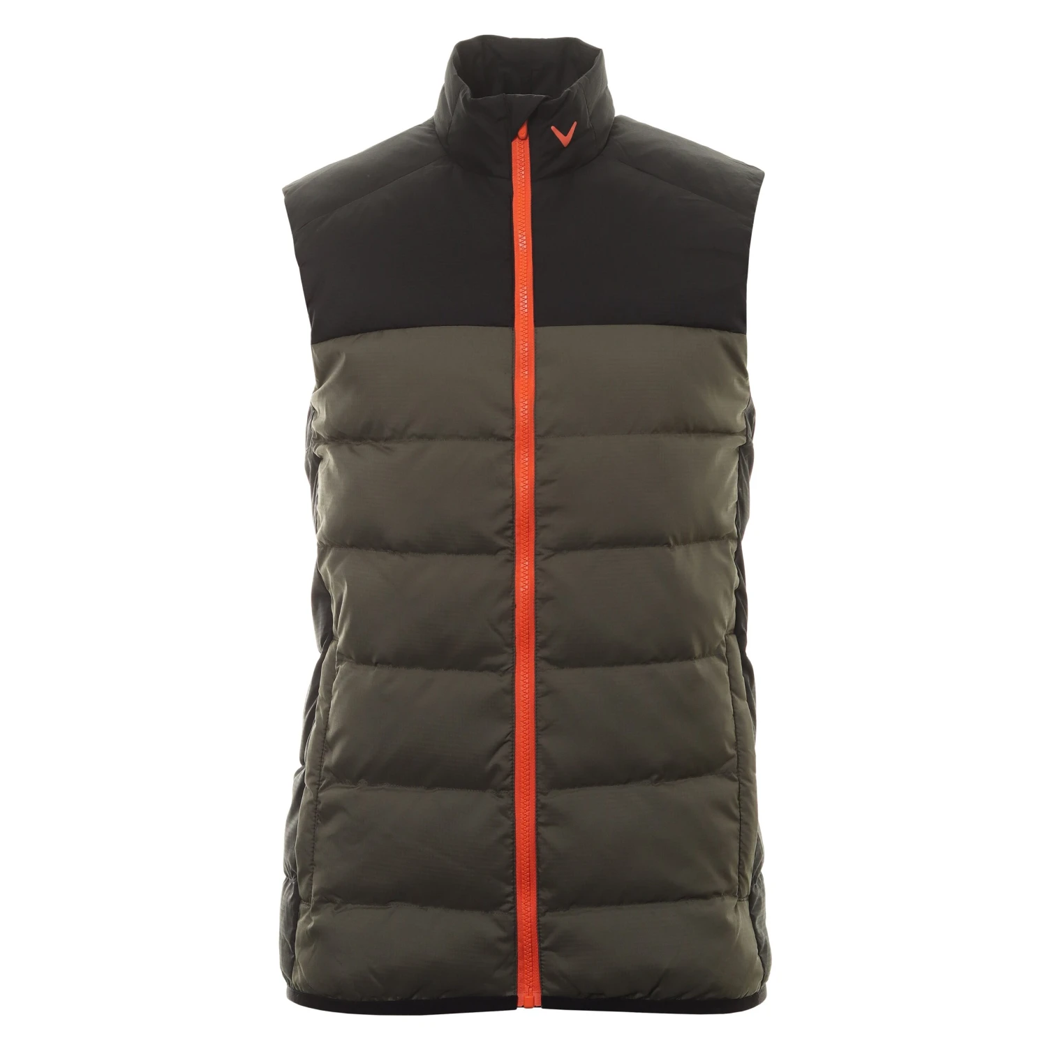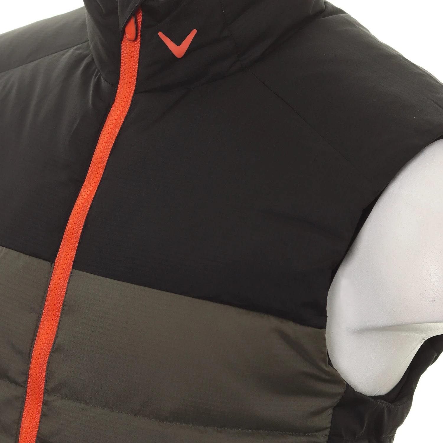 Mens Callaway Golf Premium Padded Vest. A premium, padded, wind and water resistant, full zip vest, designed with Primaloft fill woven sections for added warmth.
