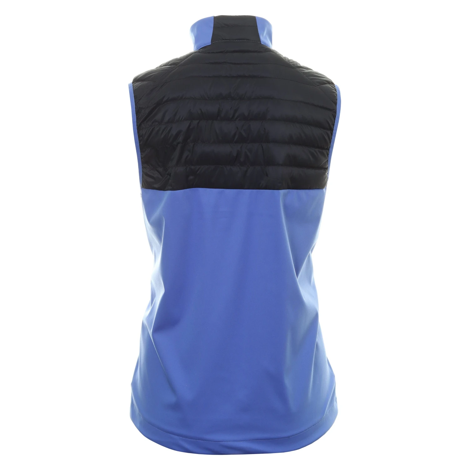 Mens Cross Stance Hybrid Golf Vest. A versatile, full zip insulating, water repellent vest with a lightly padded upper. Features include zippered 2 front hand pockets, hem adjuster, bottom hem adjuster and a micro fleece chin guard. The vest is constructed with a 4-way stretch fabric that is also exceptionally breathable.