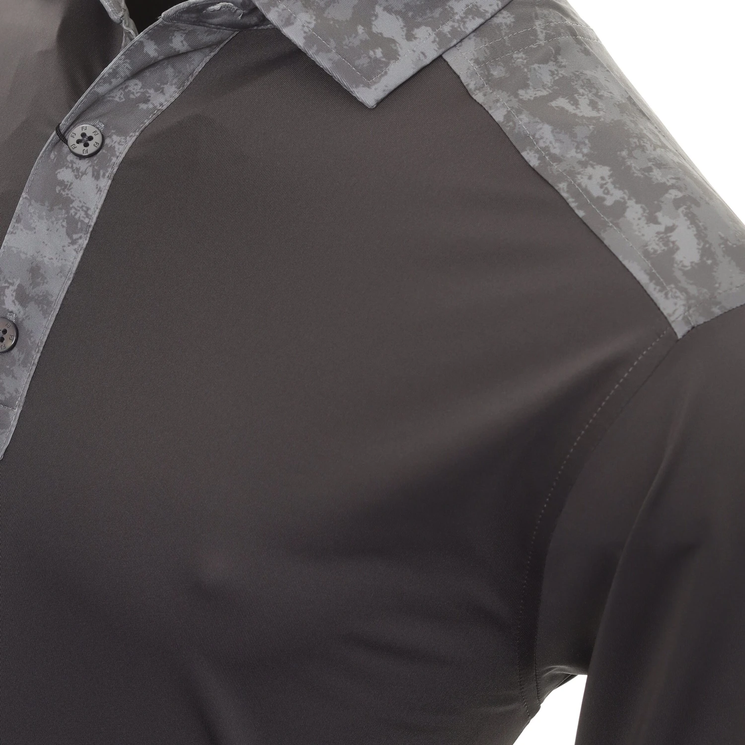 Mens FootJoy Cloud Camo Trim Golf Shirt. A stylish looking golf shirt with 3-button placket. Constructed using a technical, easy care, stretch fabric that promotes a high degree of moisture management, keeping you cool and dry on the course, whilst allowing complete ease of movement through the swing.