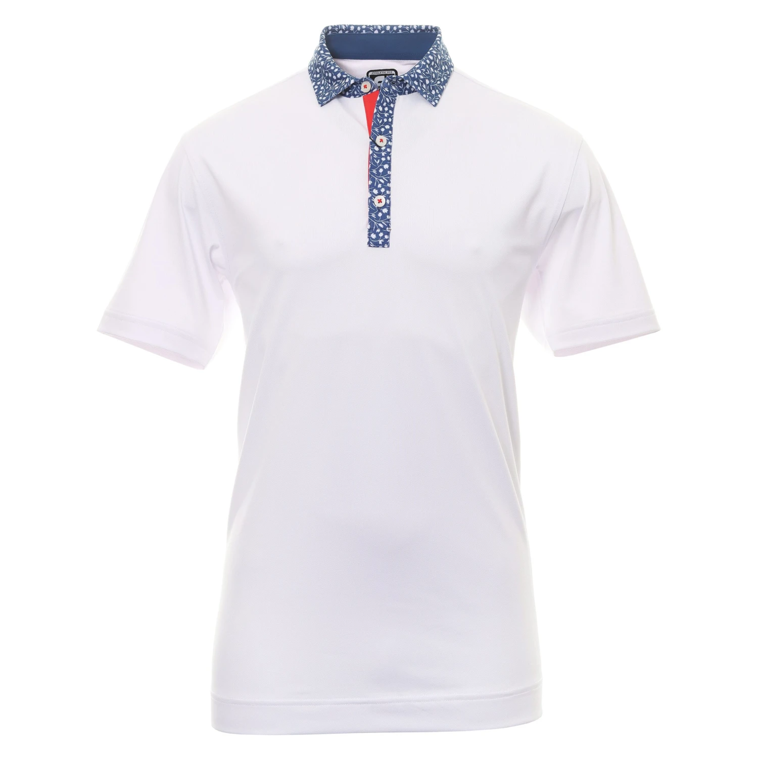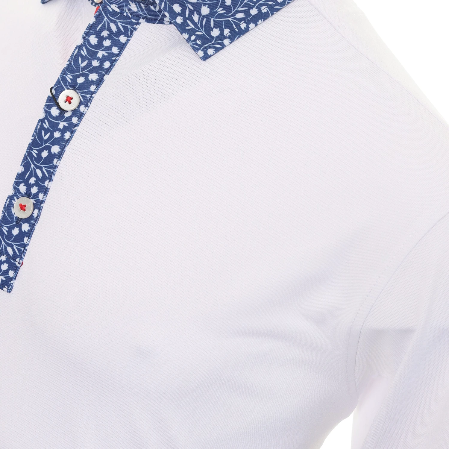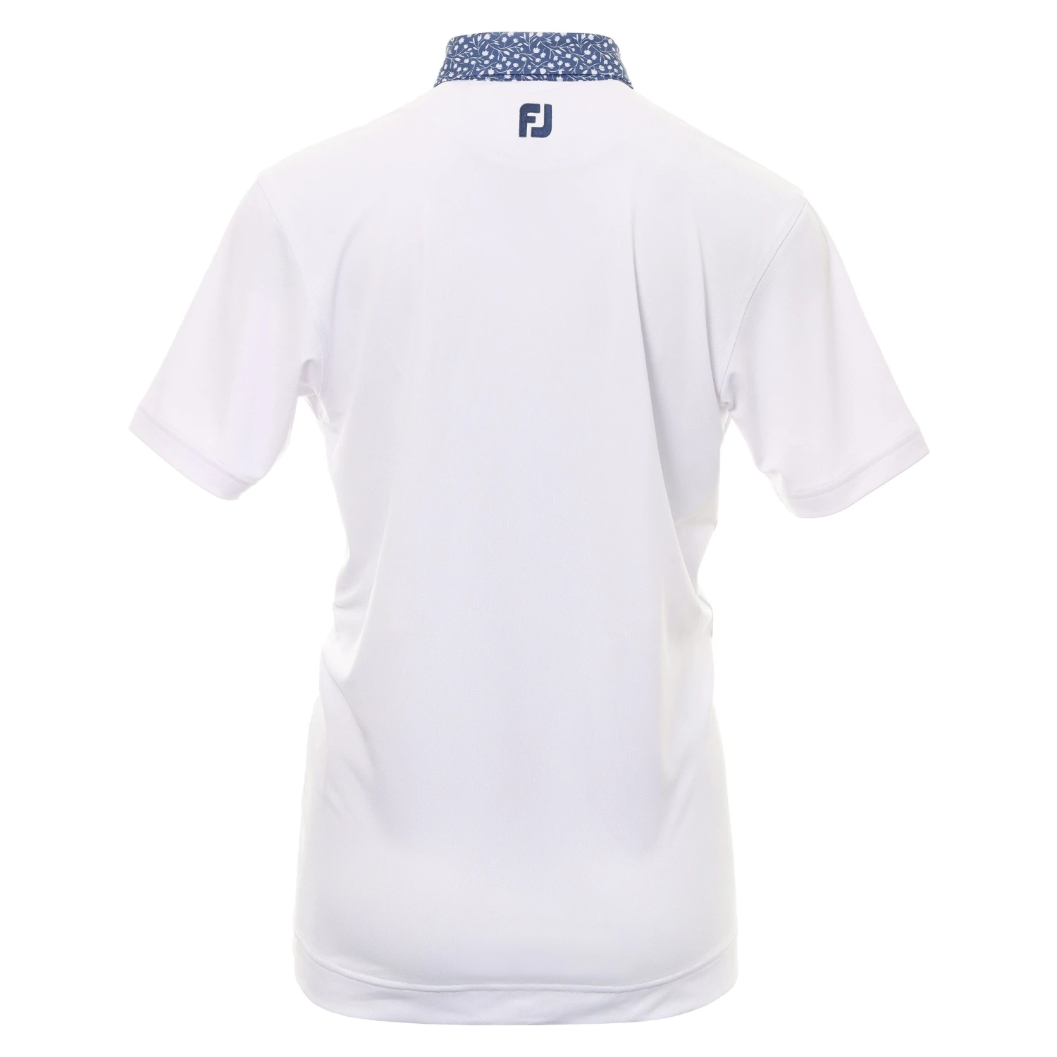 Mens FootJoy Tossed Tulips Trim Pique Golf Shirt. A stylish looking golf shirt with 3-button placket. Constructed using a technical, easy care, stretch fabric that promotes a high degree of moisture management, keeping you cool and dry on the course, whilst allowing complete ease of movement through the swing.