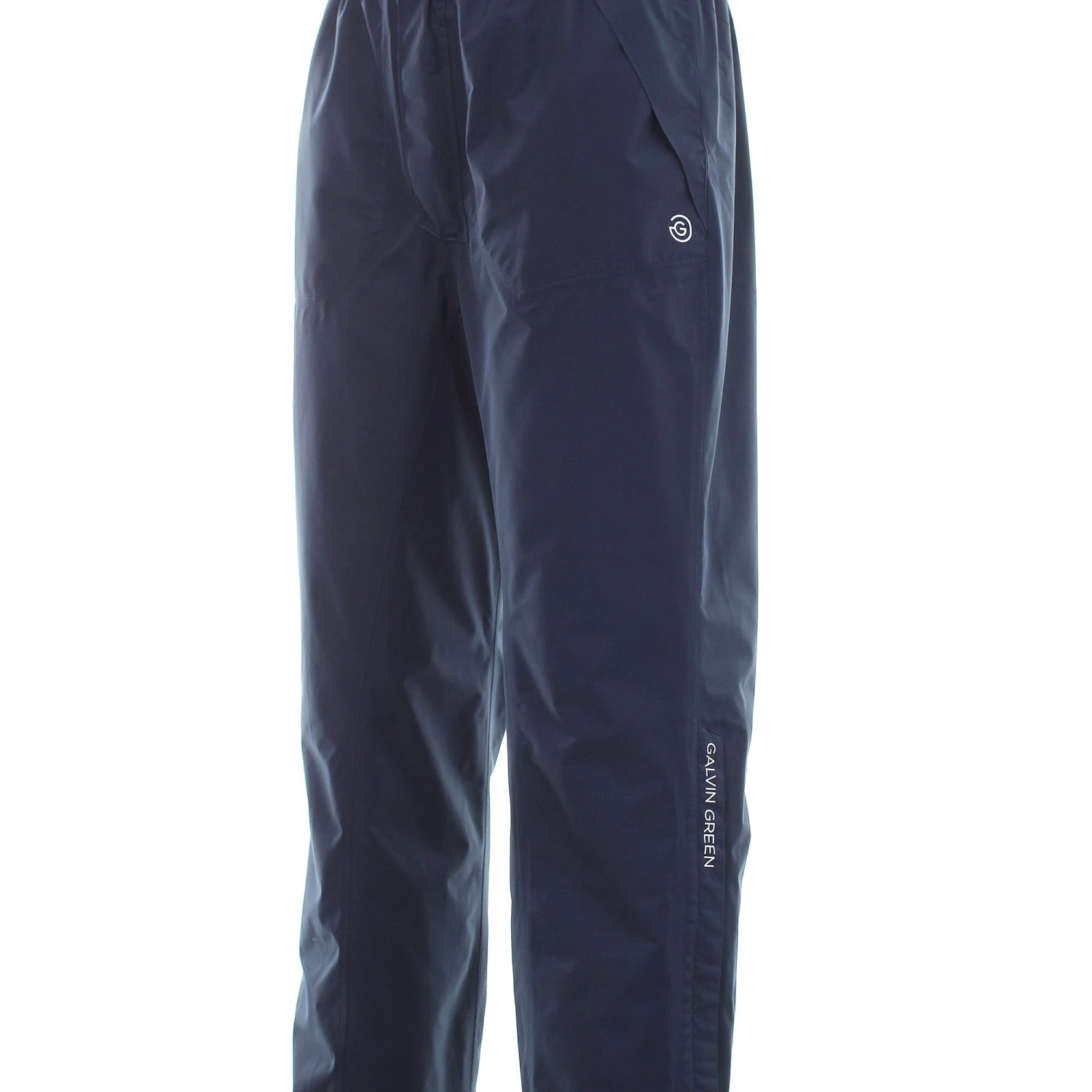 Galvin Green Andy GORE-TEX Golf Trousers. A waterproof golf trouser constructed from 2 layer GORE-TEX fabric. Features include; elasticated waistband, drawcord adjuster, zippered lower legs with velcro adjustor tabs, 2 fleece lined side slash pockets, rear glove/card pocket and split inseam for extra comfort and abrasion resistance. Galvin Green logoing to left leg and rear pocket. Extremely hard wearing and long lasting, easy to wash and maintain, machine washable. Lifetime waterproof warranty. 100% Polyester – GORE-TEX fabric with solid lining