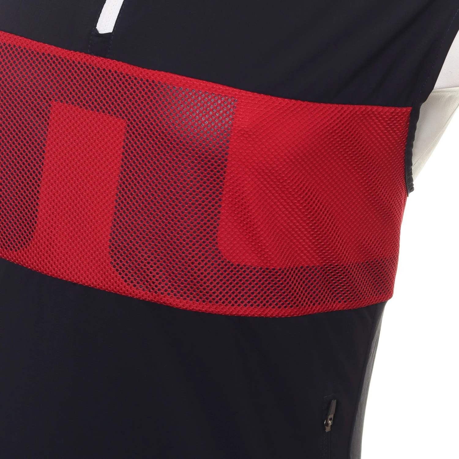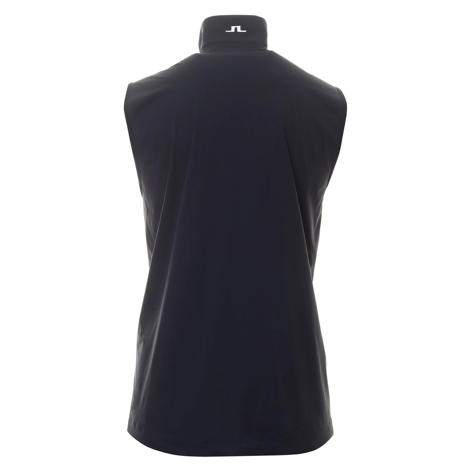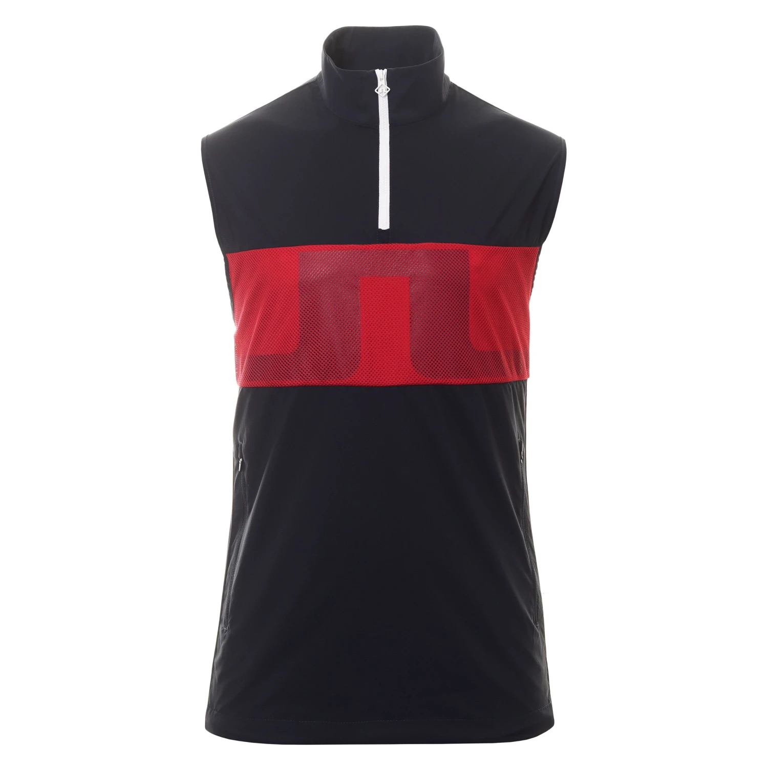 Mens J.Lindeberg Golf Dean Vest. New for Spring Summer 2023, a golf vest with a lightweight ripstop at front which will protect you from wind and a lightweight highly breathable stretch fabric at back.