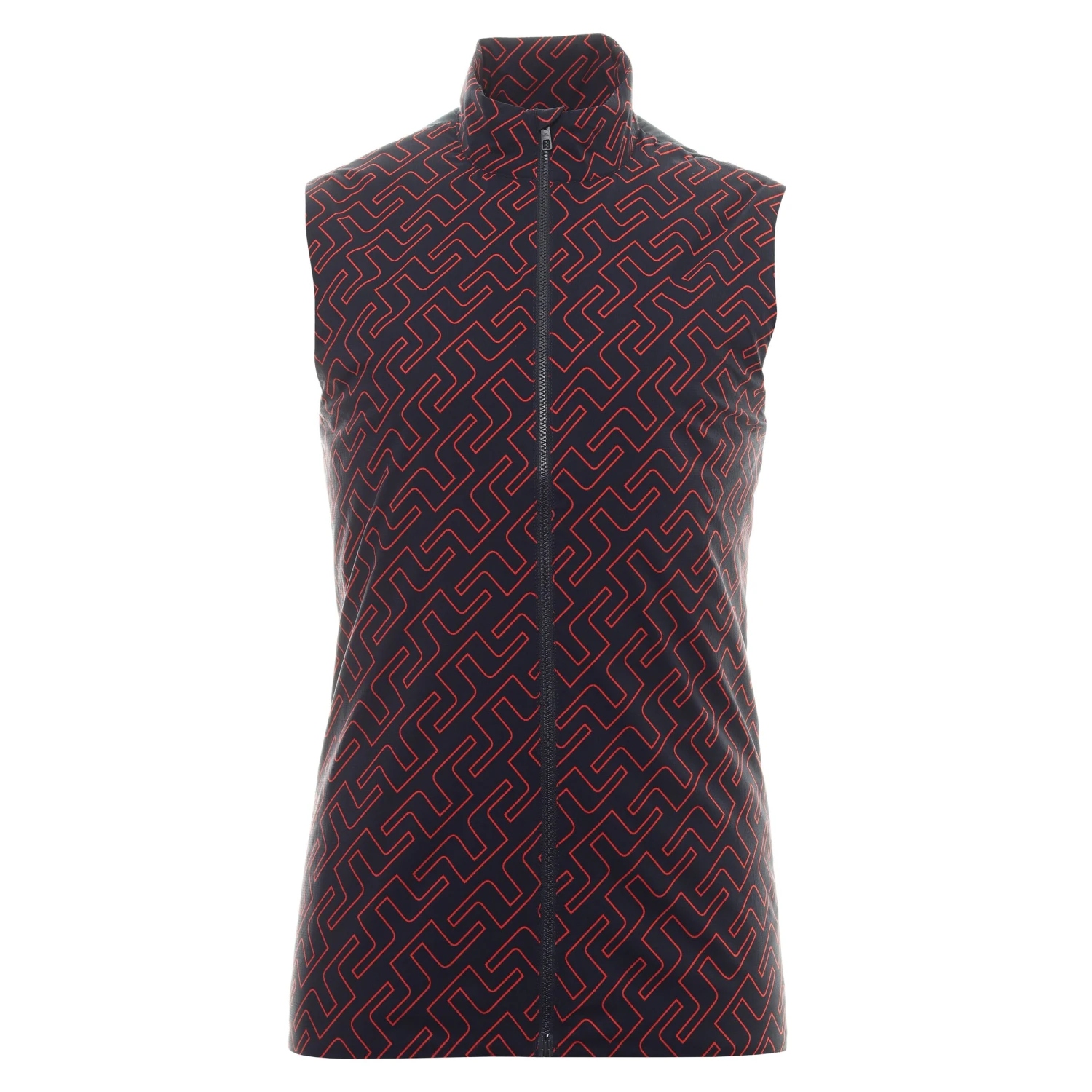 Mens J.Lindeberg Golf Packlight Print Hybrid Vest. Updated for Spring Summer 2022, a packable, outerwear vest constructed in a lightweight Ripstop fabric with Primaloft padding to protect you from wind and the back is a stretchy jersey material for playability.