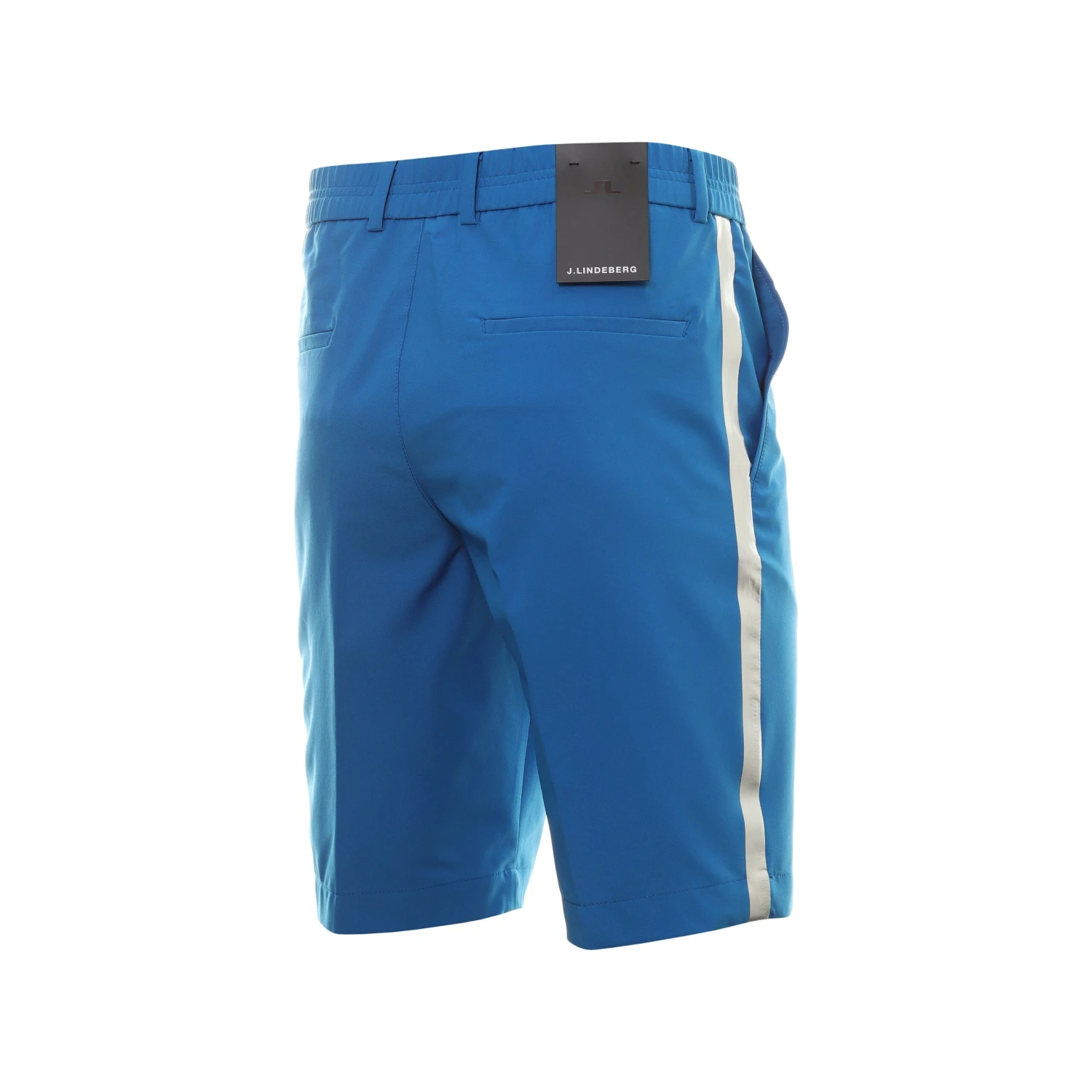 Mens J.Lindeberg Golf Stue Stripe Short. New for Spring Summer 2022, a lightweight short constructed in a stretch fabric with a subtle twill structure. Features a reflective tape side stripe for a clean yet modern look.