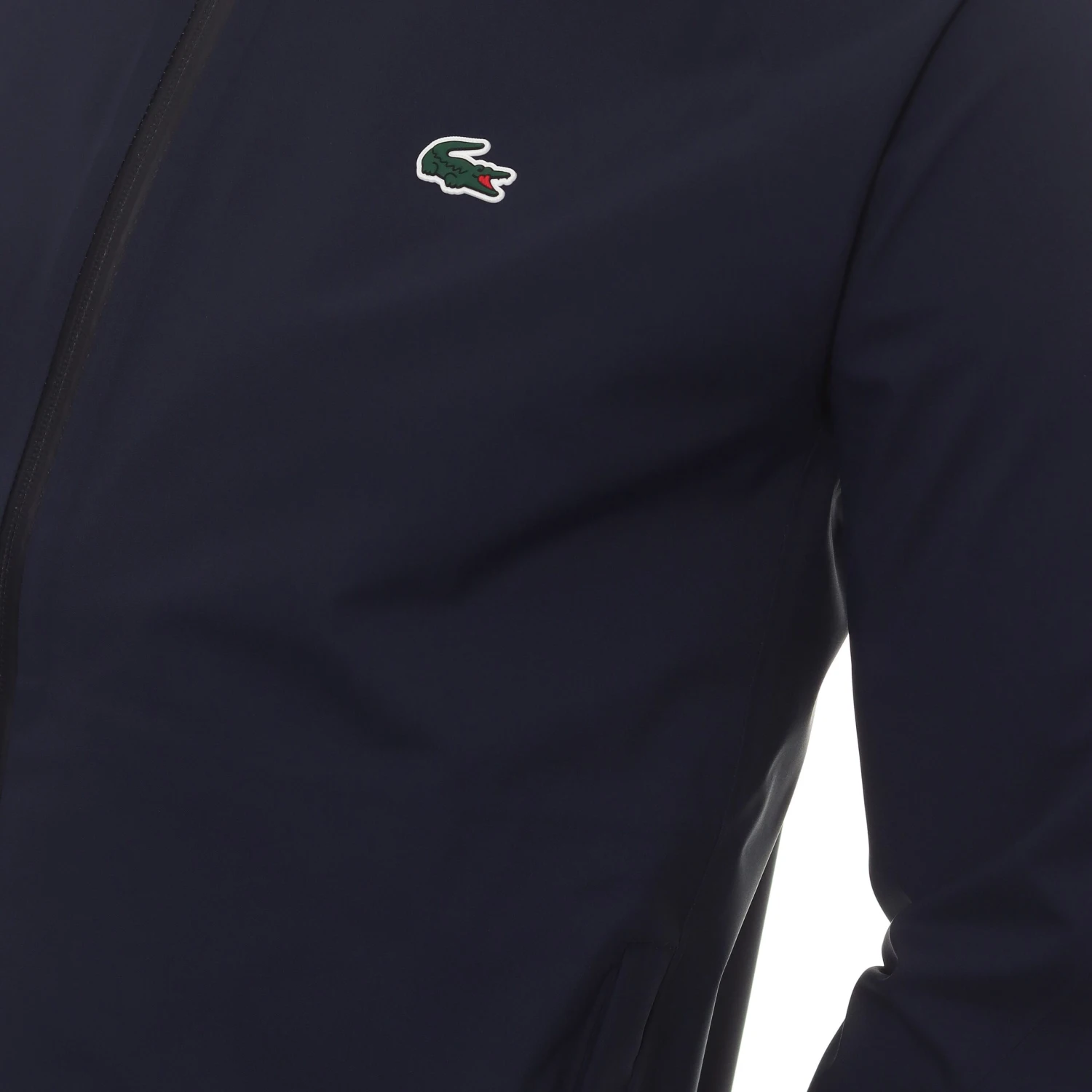 Mens Lacoste Sport Full Zip Waterproof Jacket. A full zip, waterproof, jacket constructed in a soft, comfortable, stretch fabric which offers exceptional moisture wicking properties and protection from the elements.