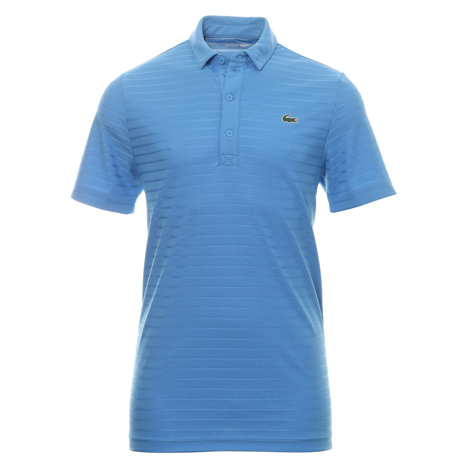 Mens Lacoste Technical Stripe Jacquard Polo Shirt. A 4-button placket, short sleeved, polo shirt constructed in a soft and comfortable fabric which offer exceptional moisture wicking properties. Finished with jacquard stripe design, self fabric collar and cuffs.