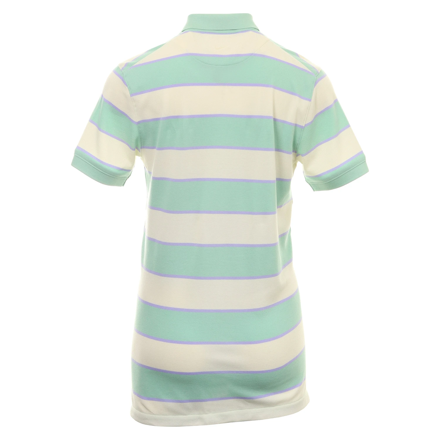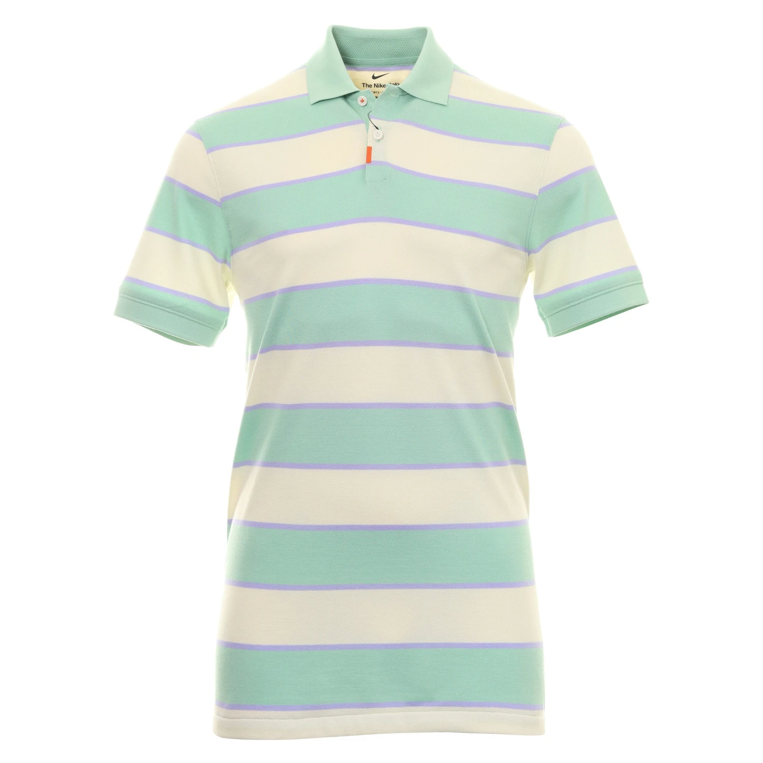 Mens Nike Golf The Rugby Stripe Polo Shirt. New for Fall 2022, a rugby top inspired shirt constructed using a stretch, cotton blend, pique fabric, to produce a highly mobile and comfortable garment. Constructed from Nike Dry fabric, Dri-FIT technology moves moisture away from the body, regulates body temperature and keeps you cool and dry. Features a drop tail hem and hem vents which allow you to wear the polo untucked for a more casual, street-ready look.