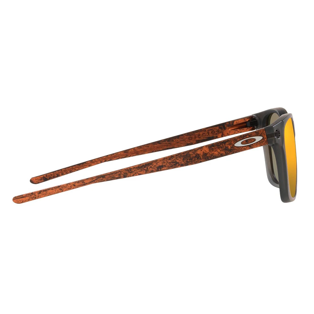 Mens Oakley Ojector Sunglasses. An extension of the Ahyris family of eyewear styles which feature a unique design element on the frame, the universally flattering silhouette of Ojector sets it apart. The strong, yet lightweight O-Matter™ frame, designed with three-point fit, helps provide all-day comfort.  Prizm™ is a revolution in lens optics built on decades of color science research. Prizm™ lenses provide unprecedented control of light transmission resulting in colors precisely tuned to maximize contrast and enhance visibility. Matte Grey Smoke frame with Prizm Ruby lens; allows 12% light transmission, ideal for bright light conditions and will increase contrast.