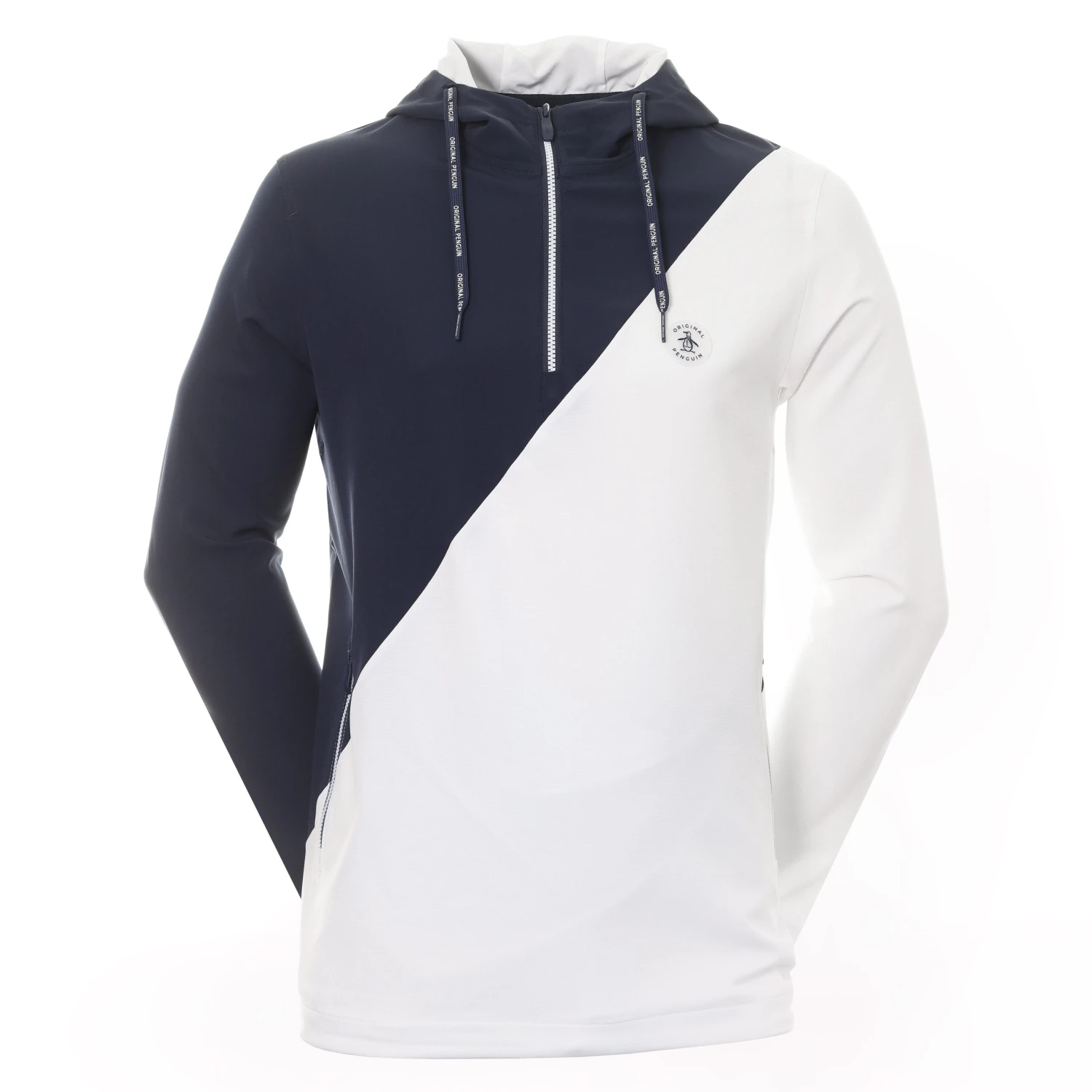 Mens Original Penguin Golf Colour Block 1/4 Zip Wind Jacket, 1/4 zip, wind jacket with contrast block design. Constructed from a moisture wicking fabric; OPG moisture management system, will keep you fresh and dry throughout your round. Stretch blend fabric adds comfort for a friction free swing.