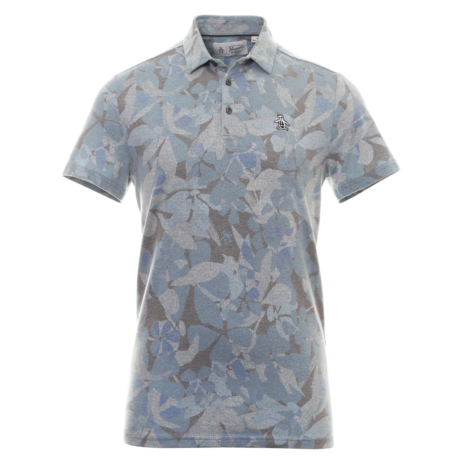 Mens Original Penguin Golf Filtered Floral Camo Print Polo Shirt. A 3-button placket polo shirt constructed from a moisture wicking fabric. OPG moisture management system, will keep you fresh and dry throughout your round. Stretch construction fabric adds comfort for a friction free swing.