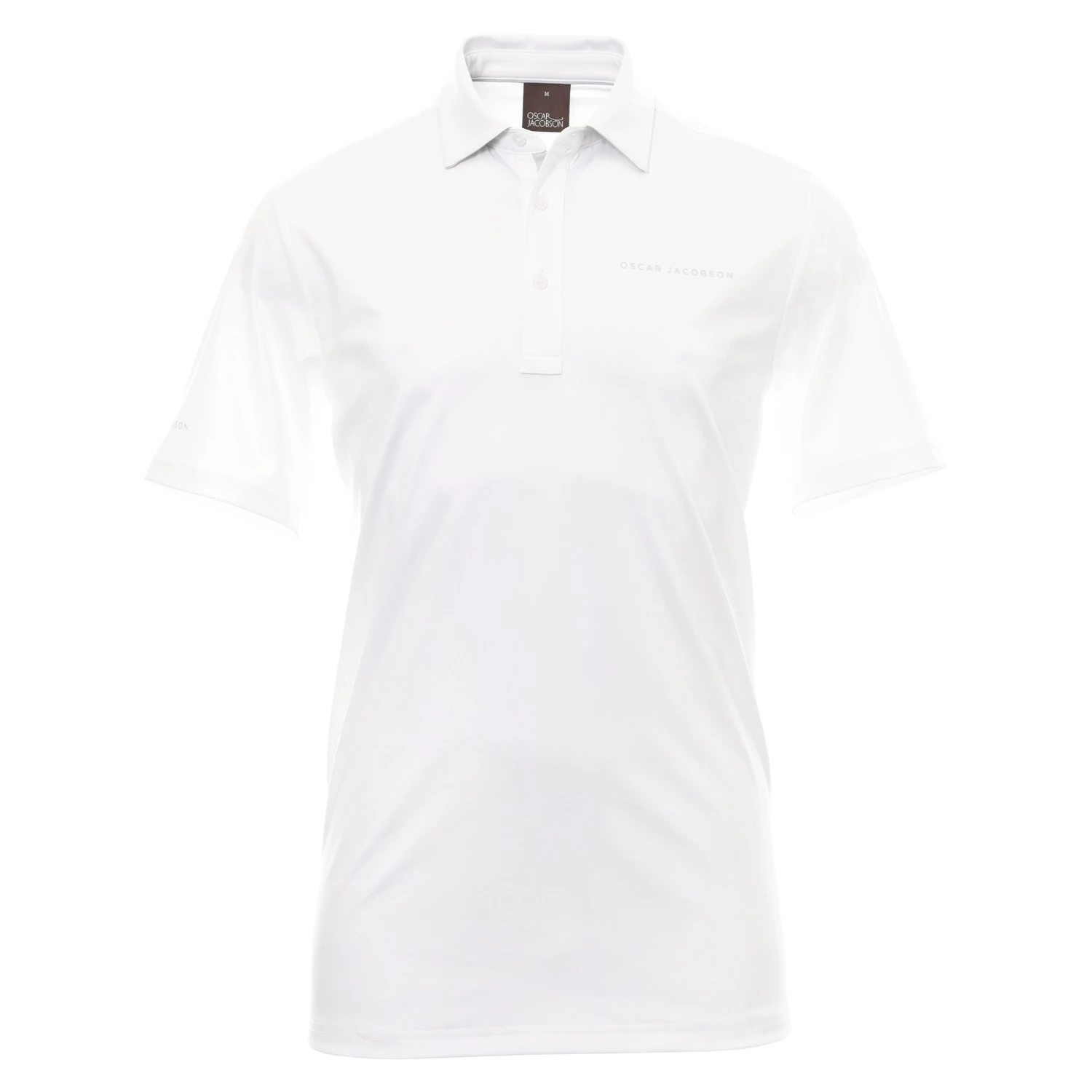 Mens Oscar Jacobson Chap II Tour Golf Polo Shirt. A beautifully crafted polo fabricated in a lightweight jersey fabric. The stretch, polyester blend fabric offers the modern golfer unrivalled freedom of movement and breathability. High level of moisture management through wicking, keeps you fresh through an anti-bacterial agent and also offers UPF protection.Â