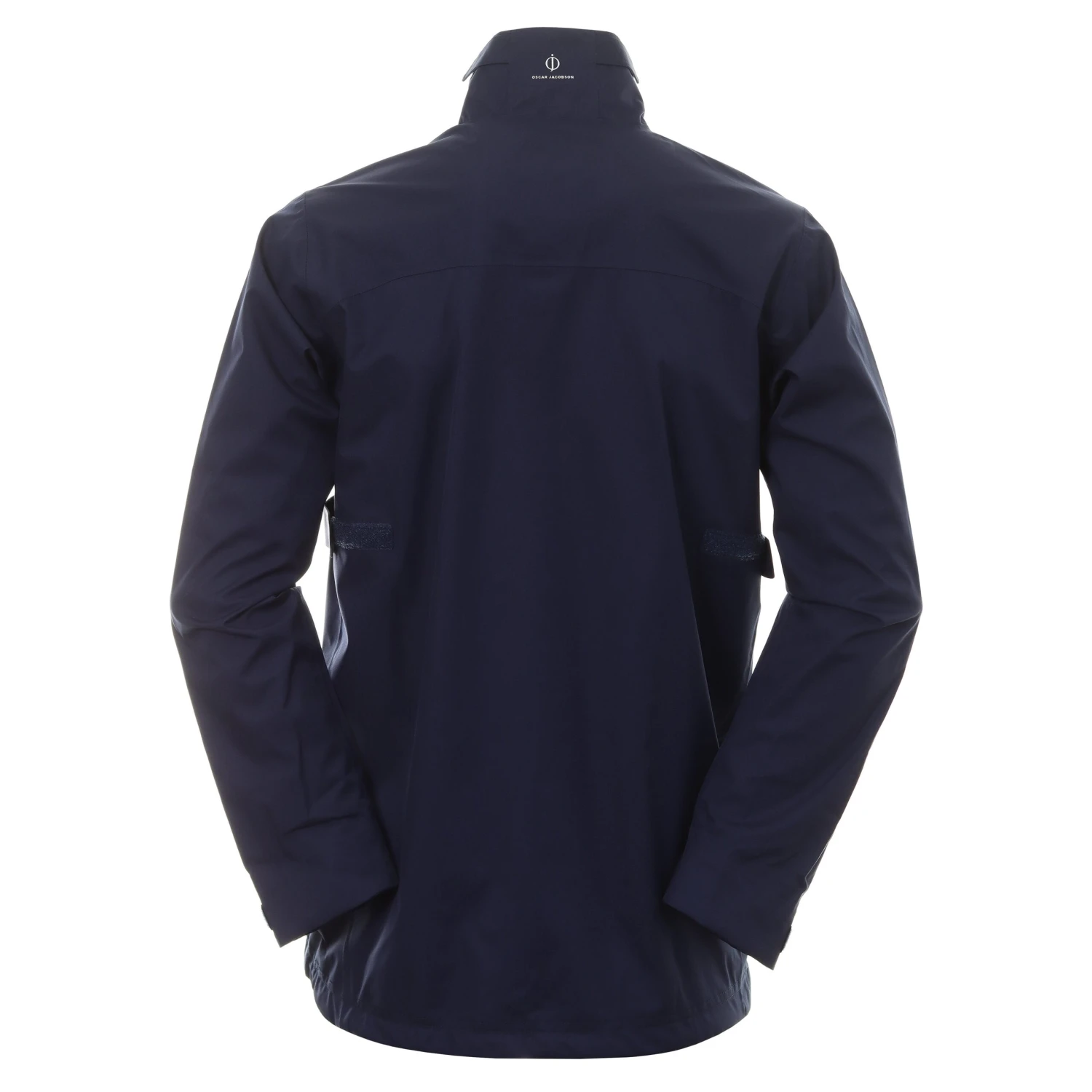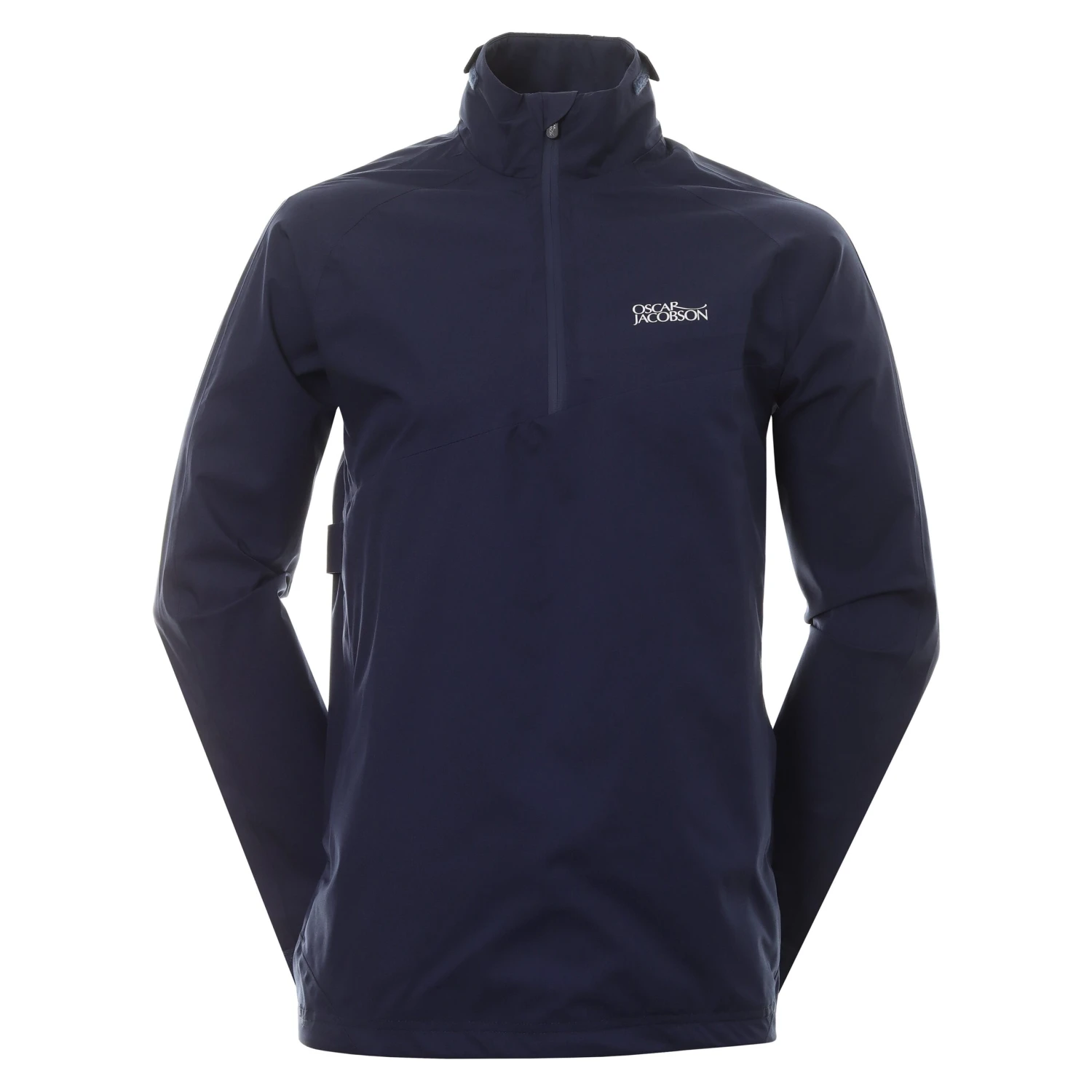 Mens Oscar Jacobson Eastwood Waterproof Golf Jacket. A lightweight, half zip, waterproof jacket in highly breathable technical fabric. Designed to offer excellent freedom of movement and provide full waterproof protection with taped seams and water repellent zippers. Features adjustable velcro cuffs, hand pockets and elasticated drawstring at the hem to offer size flexibility for the perfect fit.