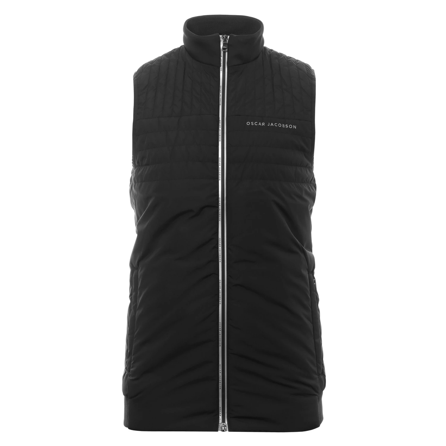Mens Oscar Jacobson Hodgson Full Zip Gilet. A stylish and versatile, full zip thermal hybrid gilet constructed using lightweight wind and water resistant fabric which enhances the playing experience and is extremely comfortable to wear.