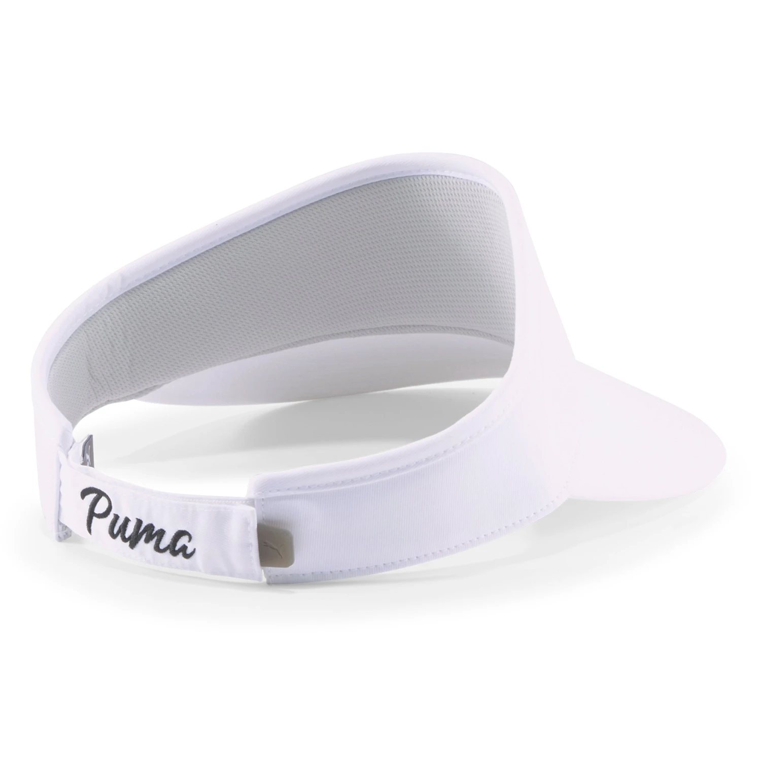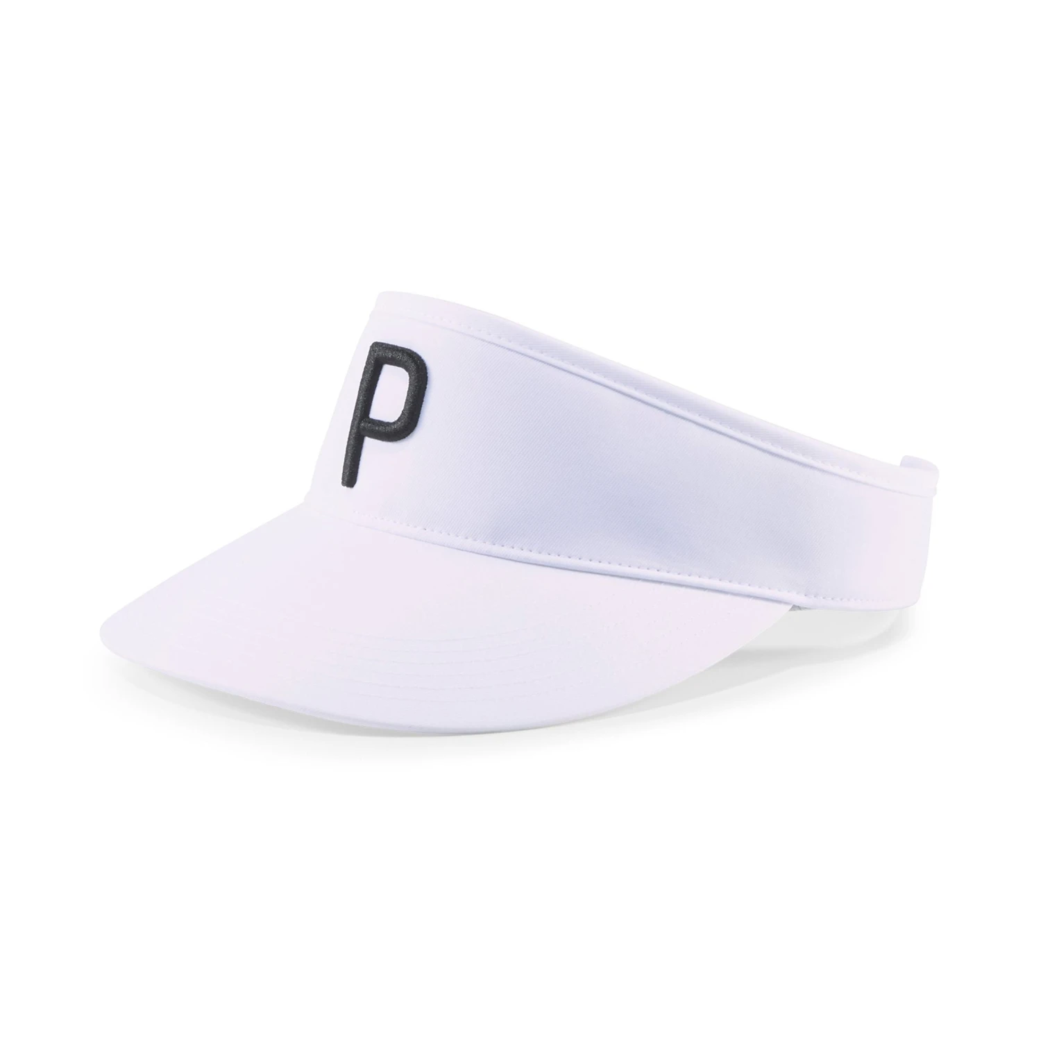 Puma Golf P Visor. A visor with slightly pre-curved bill. Features moisture wicking interior performance sweatband and is finished with 3D embroidered ‘P’ to the front.