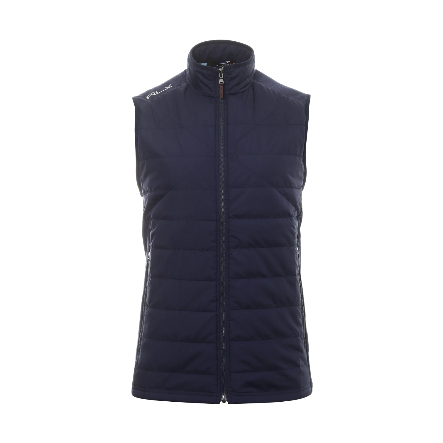 Mens RLX Ralph Lauren Full Zip Hybrid Vest. New for 2023, a full zip, hybrid vest constructed from a highly breathable, stretch fabric, this garment also features a lightly padded front body which will also offer wind and water resistance. Other features include; elasticated binding at arm holes for a secure fit and zippered hand pockets.