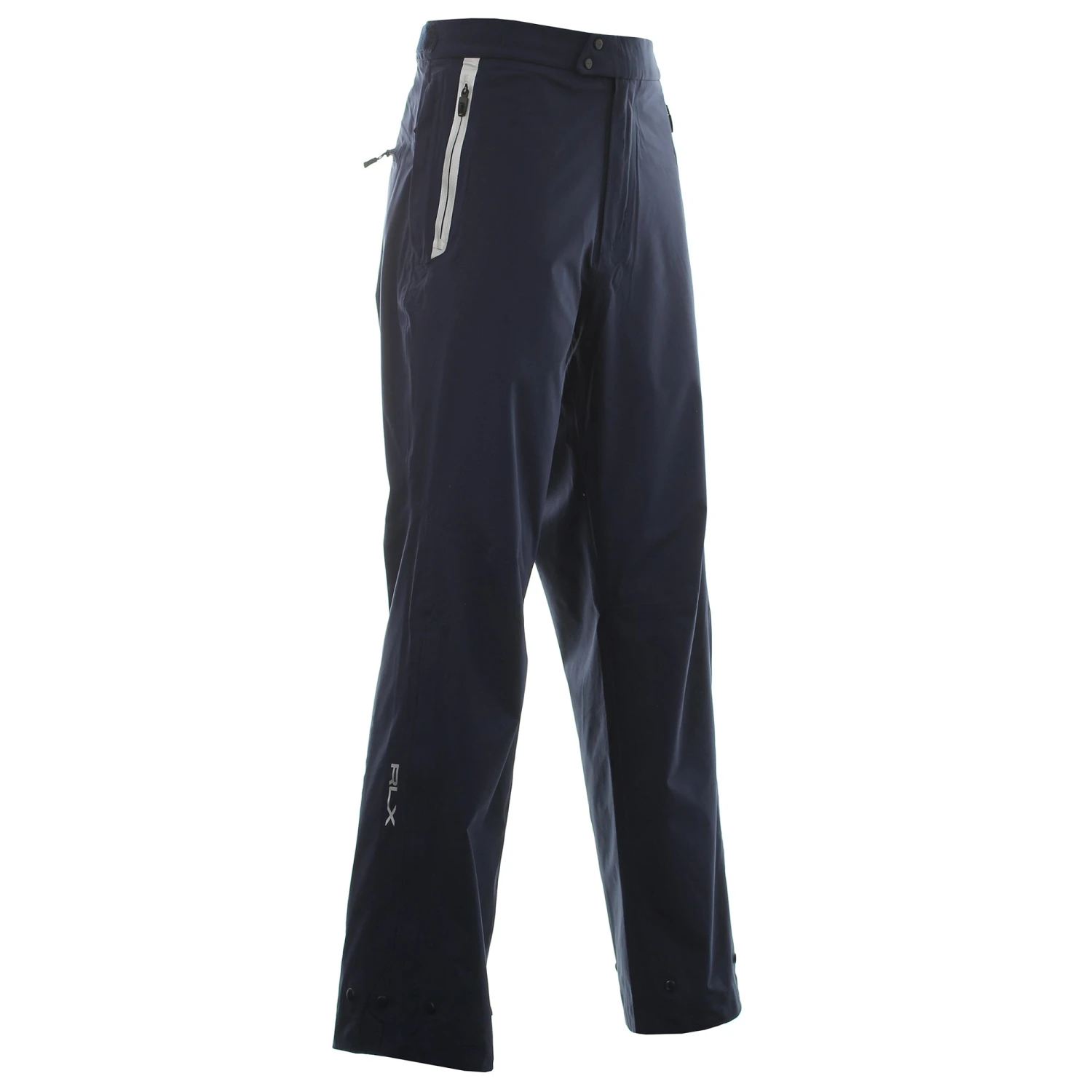 Mens RLX Ralph Lauren Iron Waterproof Trouser. A fully seam sealed, waterproof trouser. Constructed from a highly breathable, stretch fabric, these trousers offer knee articulation for ease of movement. Other features include; inner storm flap to zip fly placket, hook and bar closure and snap waistband, velcro adjuster tabs at waistband with belt loops, dual zippered hand pockets and adjustable length inseam.