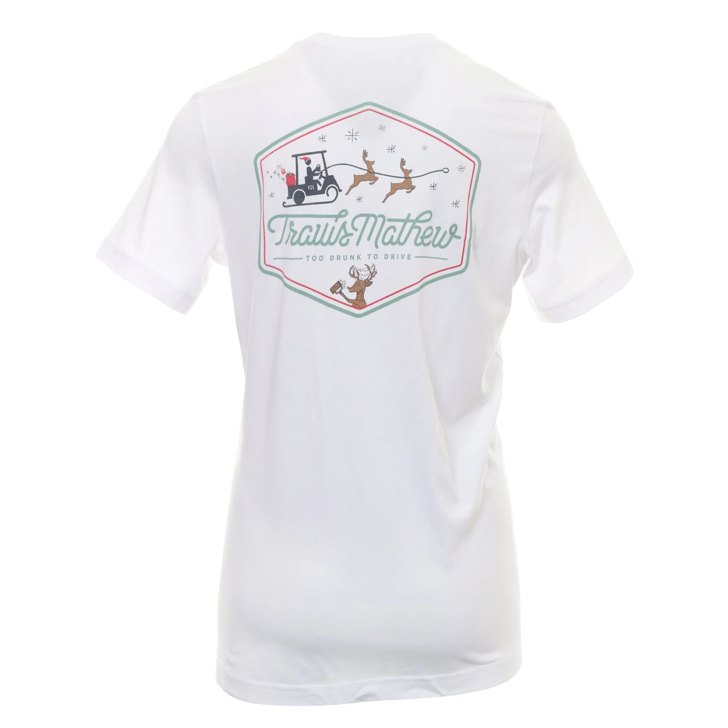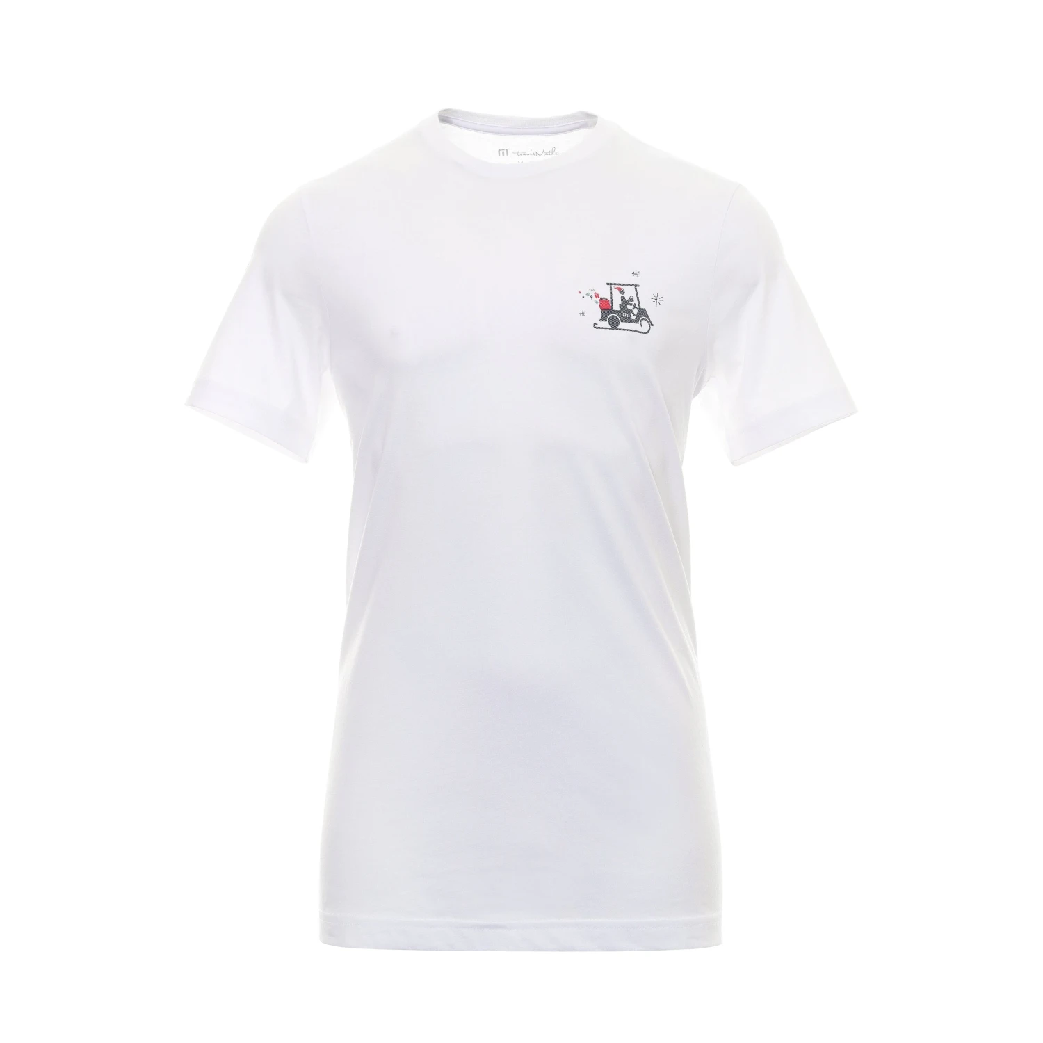 Mens TravisMathew Danisher Tee Shirt. There’s very little doubt whether you’re on the naughty or nice list. But even if Santa doesn’t like you anymore, we got you a little something in the form of our DANISHER t-shirt, featuring a festive take on our iconic golf cart icon.